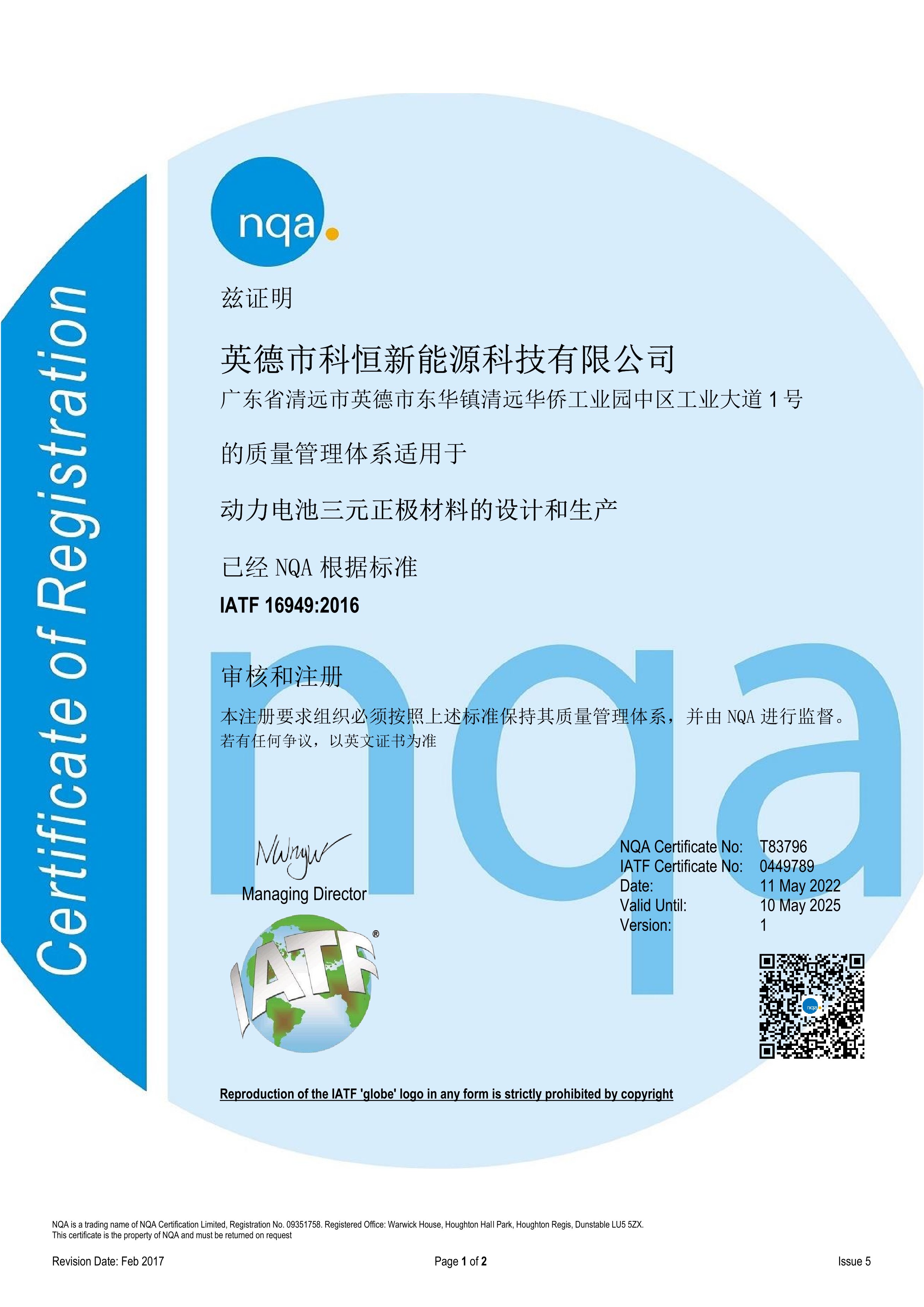 科恒堅(jiān)持“科技卓越、永恒追求、質(zhì)量第一、客戶至上”的質(zhì)量方針,設(shè)立各級(jí)質(zhì)量控制體系,保證產(chǎn)品質(zhì)量。公司先后通過了ISO9001質(zhì)量管理體系認(rèn)證和ISO14001環(huán)境管理體系認(rèn)證。公司以滿足客戶需求為宗旨,以卓越的科技成果、完善的制造過程,制造一流的產(chǎn)品、增值的服務(wù)、共享的價(jià)值,讓客戶滿意。